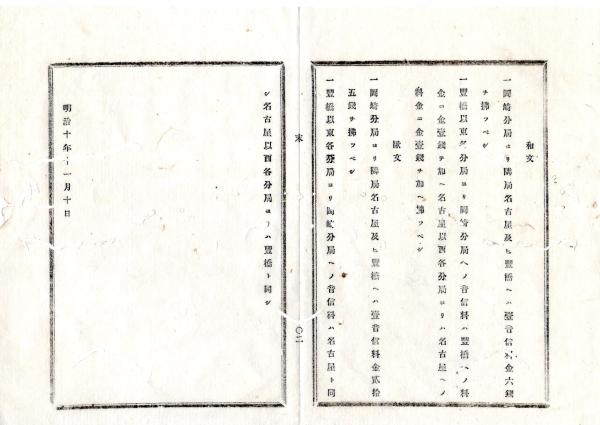 • 解説 N26012132○明治布告布達 明治10年○愛知県下岡崎電信分局設置 通信取扱 音信料設定○工部省布達 栃木県○和本古書古文書
