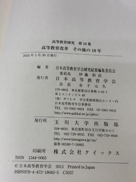 【※イタミ有り】高等教育改革 その後の10年(高等教育研究 第18集) 玉川大学出版部 日本高等教育学会