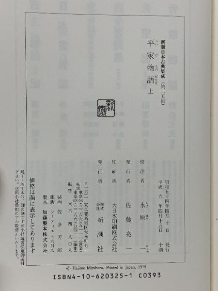 平家物語 上中下 新潮日本古典集成 新潮社 佐藤亮一 (上中下/全3巻セット)