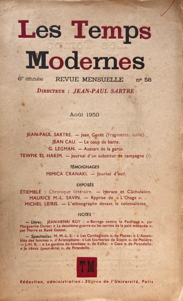 Les Temps modernes Aout 1950 No.58 J.P.Sartre サルトル