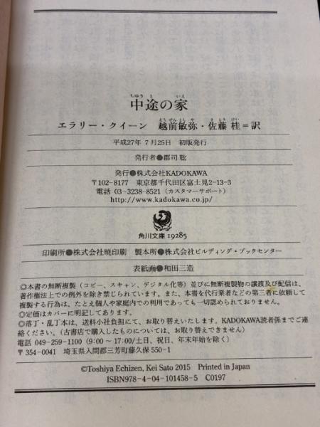 【※カバー無し】中途の家 (角川文庫) KADOKAWA エラリー・クイーン