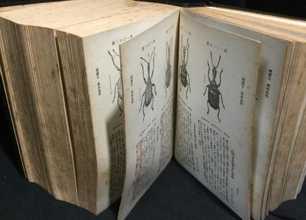 • 解説 日本昆蟲圖鑑; 昭和16年再版発行 函付(ヤケ、ふたの部分外れ) 本体表紙スレ 三方やけシミ ページ内赤鉛筆での線引き・シミ有