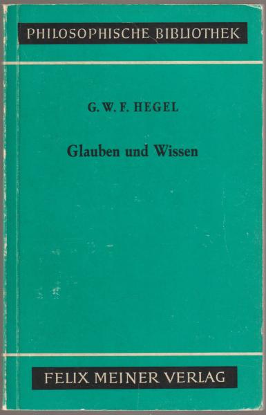 Glauben und Wissen : oder die Reflexionsphilosophie der Subjektivität in der Vollständigkeit ihrer Formen als Kantische, Jacobische und Fichtesche Philosophie. <Philosophische Bibliothek, Bd. 62b>