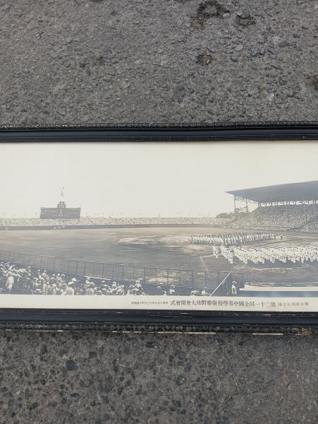 • 解説 昭和10年8月13日 甲子園球場  朝日新聞社主催  額サイズ・33cm×138cm   昭和9年に、日米野球でベーブルースが来日して活躍した当時の頃の球場の写真と思われます。