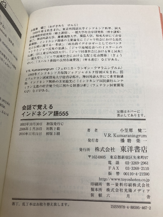 【※カバー無し】会話で覚えるインドネシア語555 東洋書店 小笠原 健二