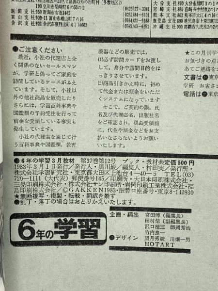 (2) 6年の学習 3月教材 第37巻 第12号 1983年発行 学習研究社 卒業お祝い特集=思い出の6年間