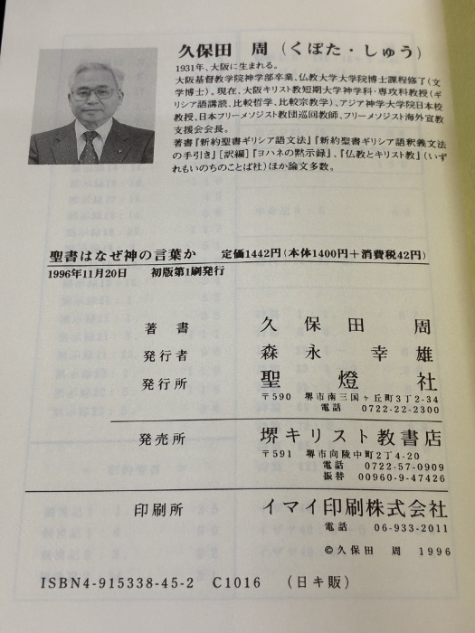 聖書はなぜ神の言葉か ギリシア語聖句解説120語 聖燈社 久保田周