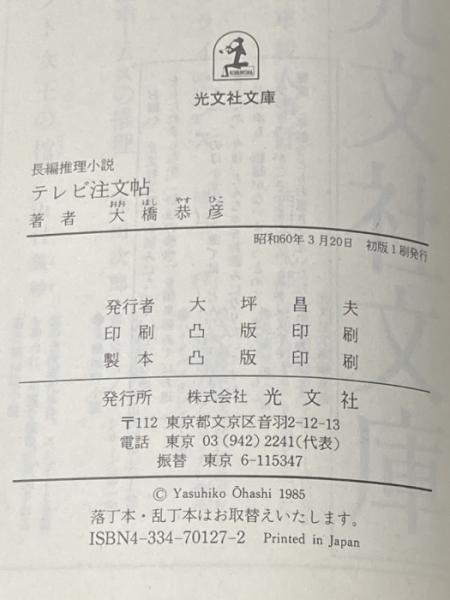 ※イタミ有 テレビ注文帳: あまから批評20年 (光文社文庫 お 3-1) 光文社 大橋 恭彦