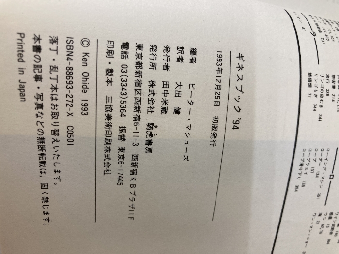 【※イタミ有り】ギネスブック: 世界記録事典 (’94) きこ書房 ピーター マシューズ