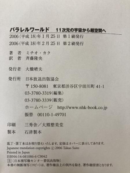 【※イタミ有り】パラレルワールド 11次元の宇宙から超空間へ NHK出版 ミチオ カク