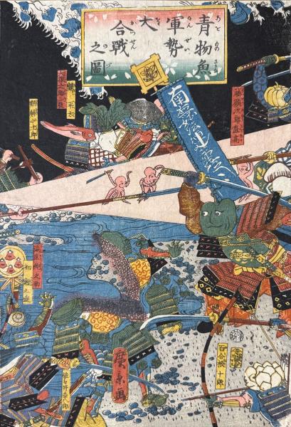 【浮世絵】青物魚軍勢大合戦之図