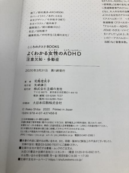 【※カバー無し】こころのクスリBOOKS よくわかる女性のADHD 注意欠如・多動症 主婦の友社 司馬 理英子