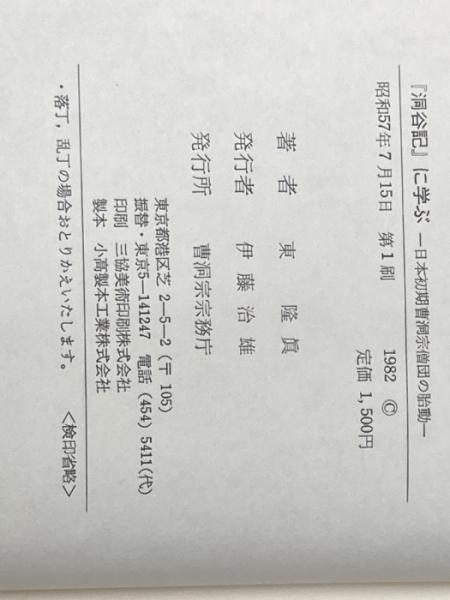 洞谷記に学ぶ―日本初期曹洞宗僧団の胎動 (1982年) 曹洞宗宗務庁 東 隆真