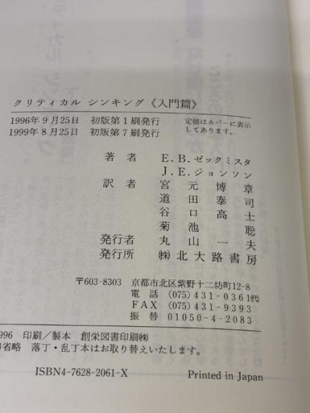【※カバー無し】クリティカルシンキング 入門篇: あなたの思考をガイドする40の原則 北大路書房 E.B.ゼックミスタ