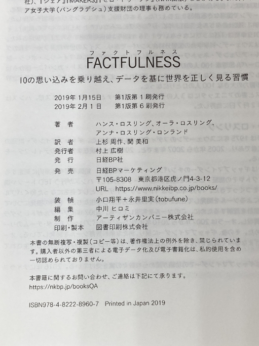【※カバー無し】FACTFULNESS 10の思い込みを乗り越え、データを基に世界を正しく見る習慣 日経BP ハンス・ロスリング
