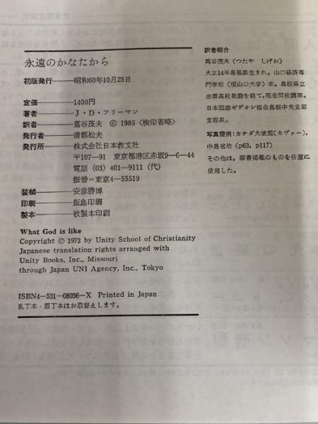 【※カバー無し】永遠のかなたから: 詩集 日本教文社 J.D.フリーマン
