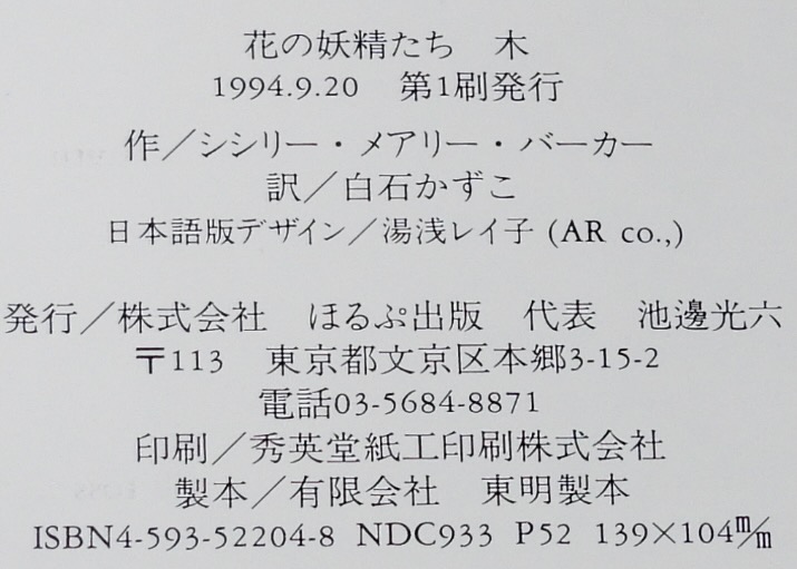 • 解説 花の妖精たち/木 ほるぷ出版 1994.9.20 第1刷 文庫ハードカバー.