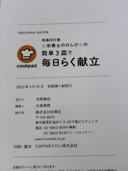 【※イタミ有り】増補改訂版 ☆栄養士のれしぴ☆の簡単3皿で毎日らく献立 (扶桑社ムック) 扶桑社 ☆栄養士のれしぴ☆