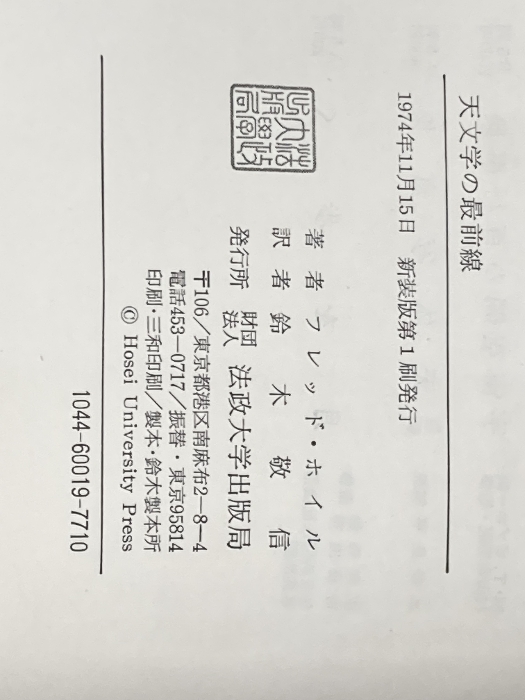 ※イタミ有 天文学の最前線 (1968年) 法政大学出版局 F.ホイル