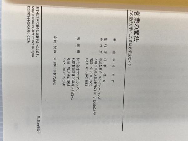 【※カバー無し】営業の魔法 ビーコミュニケーションズ 中村 信仁