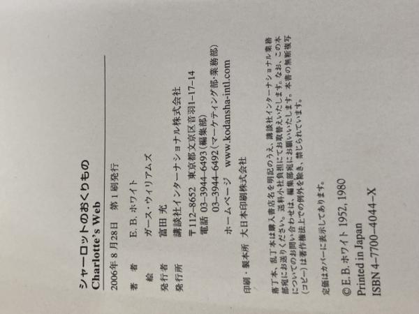 【※カバー無し】シャーロットのおくりもの - Charlotte's Web【講談社英語文庫】 講談社インターナショナル E.B.ホワイト