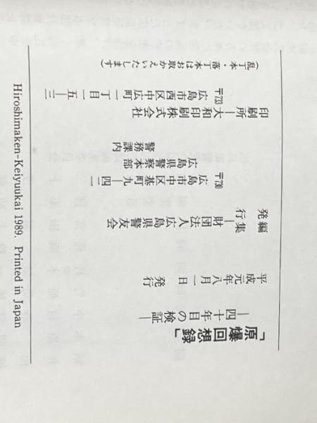 ※イタミ有 原爆回想録 40年目の検証 広島県警友会 財団法人広島県警友会