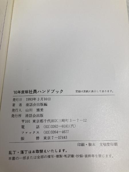 社員ハンドブック 1993年度版―読んで、見て、点検してつかむ基本心得 清話会出版 清話会出版