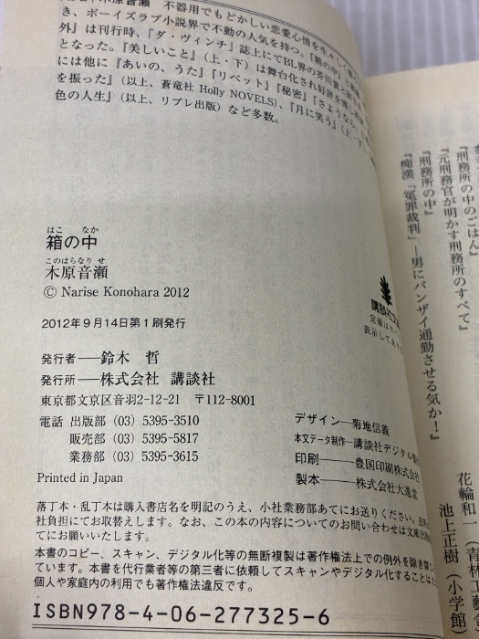 【※イタミ有り】箱の中 (講談社文庫 こ 80-1) 講談社 木原 音瀬