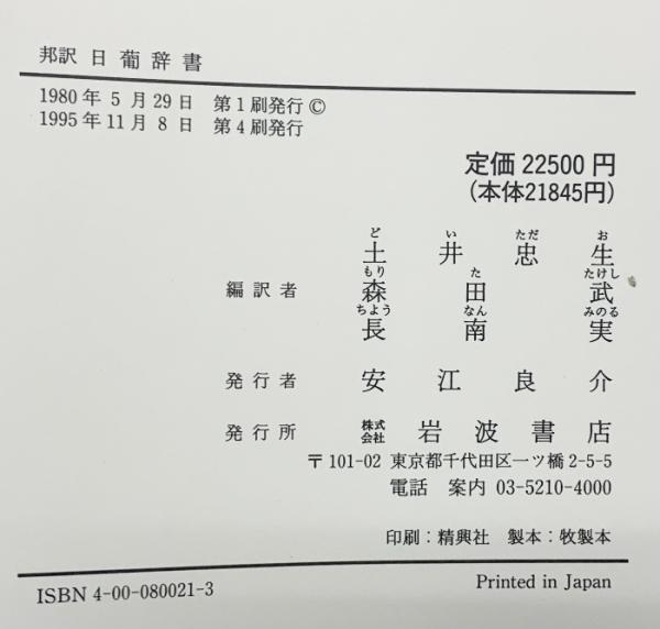 邦訳 日葡辞書(全2冊セット) 岩波書店 土井 忠生