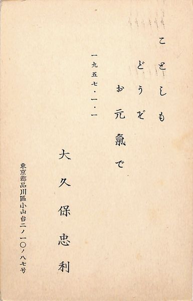 大久保忠利葉書(印刷/年賀)