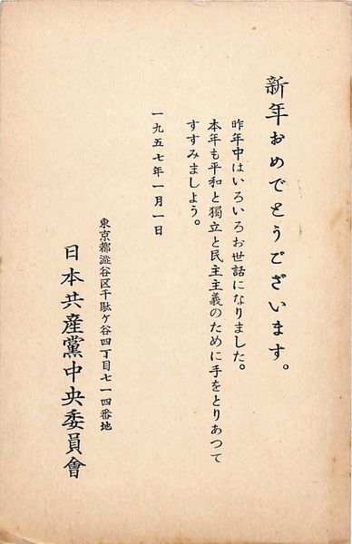 日本共産党中央委員会葉書(印刷/年賀)