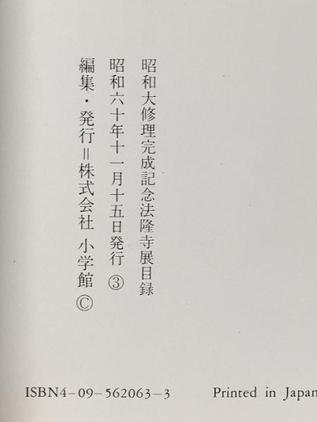 図録 昭和大修理完成記念 法隆寺展 昭和資財帳への道 昭和60年 株式会社小学館