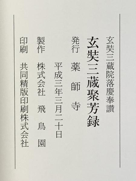 図録 玄奘三蔵聚芳録 平成3年 薬師寺