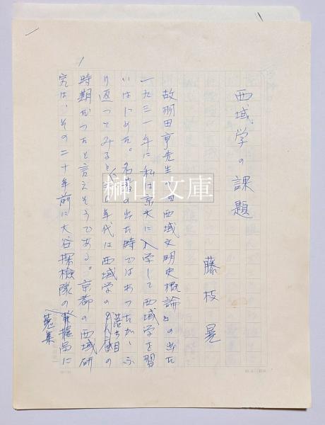• 解説 「西域学の課題」p5のみコピー補(編集者による原本紛失が理由)、仏教文化研究所紀要・筑摩書房原稿用紙を用いる、保存良好