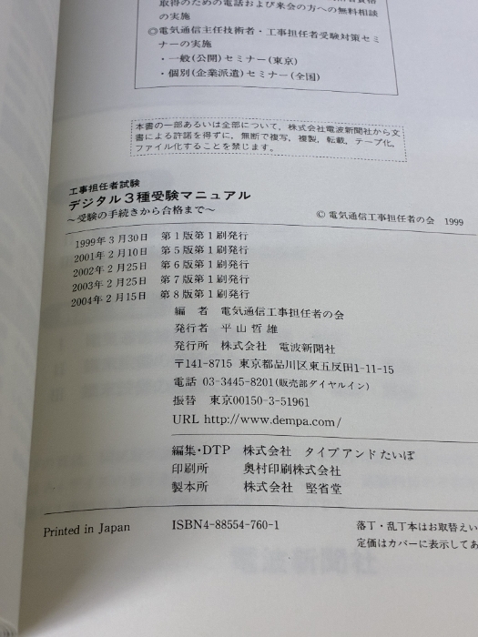 【※イタミ有り】工事担任者試験デジタル3種受験マニュアル 2004年版 電波新聞社 電気通信工事担任者の会