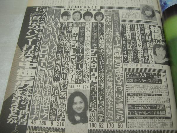 GORO NO.10 ゴロー 1982年05月13日号 堀ちえみ 表紙+3折ピンナップ 瀬尾和美 斉藤慶子(インタビュー記事) 田中裕子 田中美佐子 田中裕子 柏原よしえ 夏小町 川島なお美 西島玲子 川村ひとみ 杉田かおる ジョジ後藤
