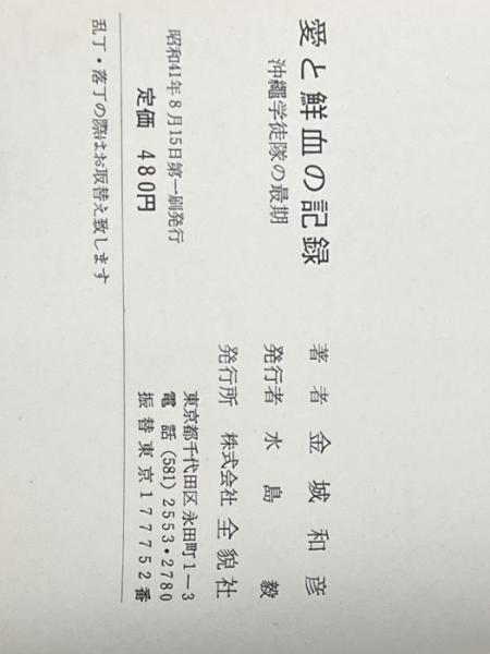 ※イタミ有 愛と鮮血の記録―沖縄学徒隊の最期 (1966年) 全貌社 金城 和彦