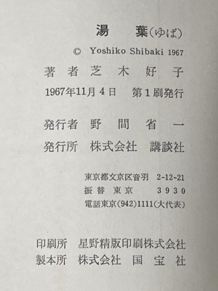 ※イタミ有 湯葉 (1967年) 講談社 芝木 好子