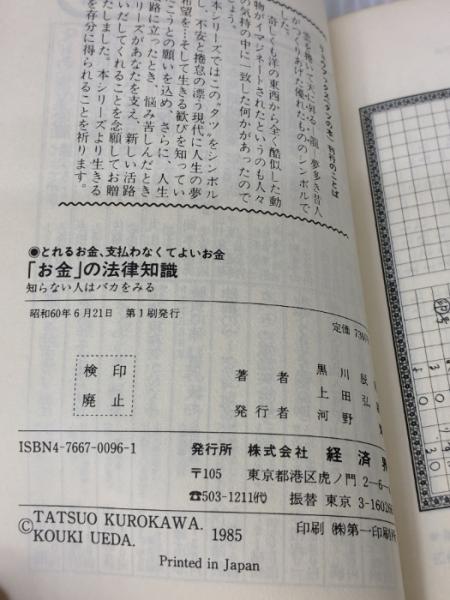 お金の法律知識: とれるお金、支払わなくてよいお金 知らない人はバカをみる (タツの本 96) 経済界 黒川 辰男