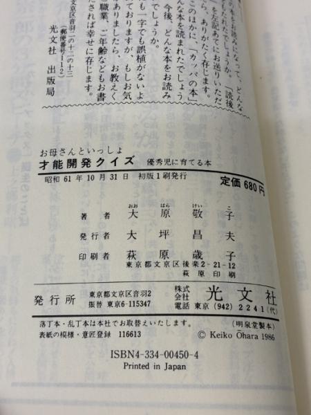 お母さんといっしょ才能開発クイズ (カッパ・ブックス) 光文社 大原 敬子