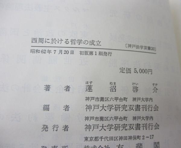 西周に於ける哲学の成立  近代日本における法哲学成立のためのエチュード <神戸法学双書 20>