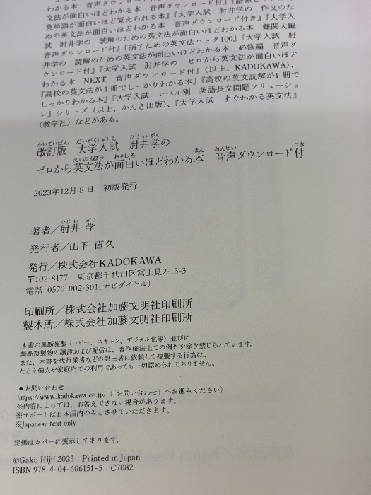 【※イタミ有り】改訂版 大学入試 肘井学の ゼロから英文法が面白いほどわかる本 音声ダウンロード付 KADOKAWA 肘井 学