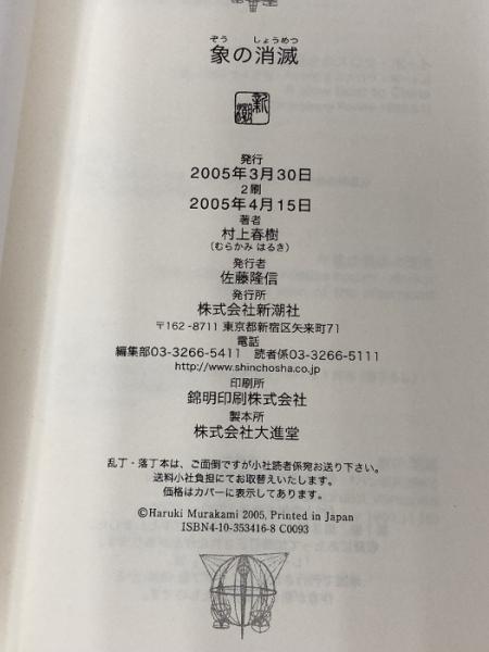 「象の消滅」 短篇選集 1980-1991 新潮社 村上 春樹