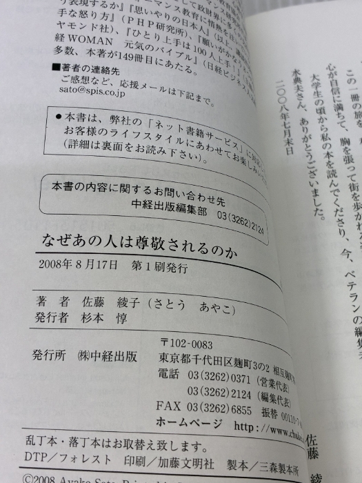 【※難あり】なぜあの人は尊敬されるのか: 仕事も人生もうまくいく7つの法則 KADOKAWA(中経出版) 佐藤 綾子