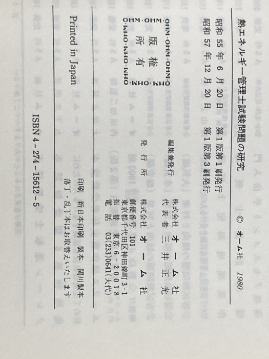 ※イタミ有 熱エネルギー管理士試験問題の研究 (1980年) オーム社