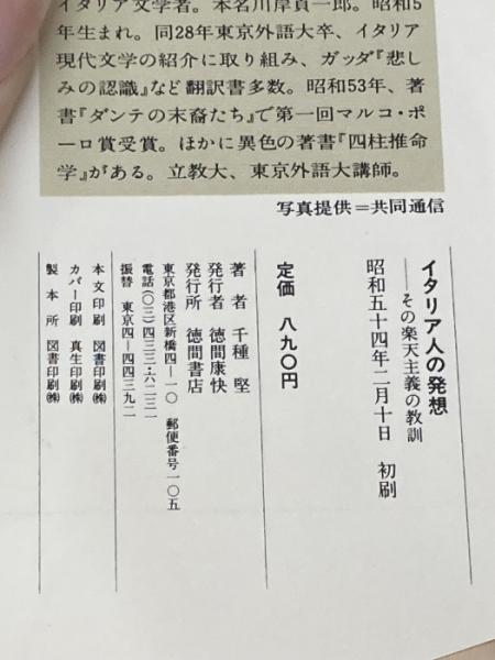 イタリア人の発想―その楽天主義の教訓 (1979年) 徳間書店 千種 堅
