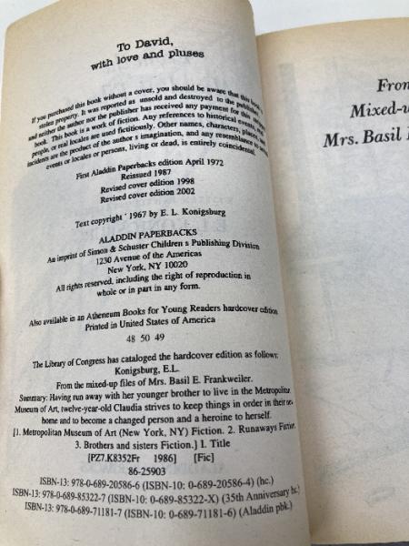 From the Mixed-Up Files of Mrs. Basil E. Frankweiler Atheneum Books for Young Readers Konigsburg, E.L.