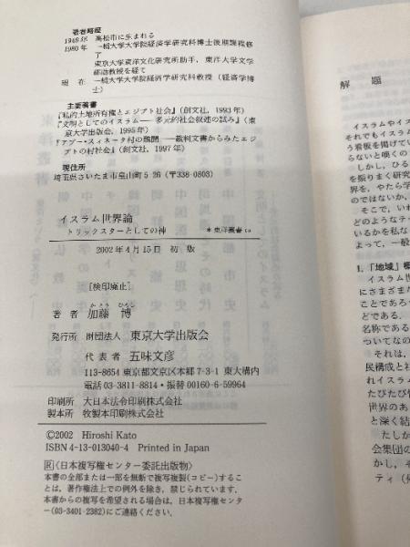【※カバー無し】イスラム世界論: トリックスターとしての神 (東洋叢書 10) 東京大学出版会 加藤 博