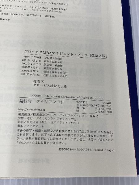 グロービスMBAマネジメント・ブック【改訂3版】 ダイヤモンド社 グロービス経営大学院
