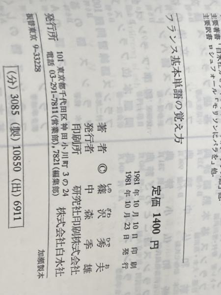 ※イタミ有 フランス基本単語の覚え方 白水社 篠沢 秀夫
